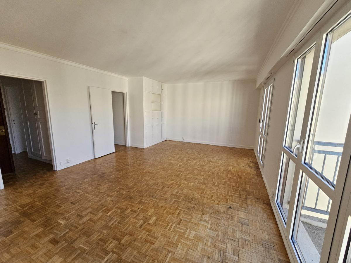 Caractères favorables : dernier étage avec ascenseur, appartement traversant, belle exposition Sud/Nord, balcon exposé Sud, vue Tour Eiffel depuis les chambres, beaux volumes intérieurs, bon état général.